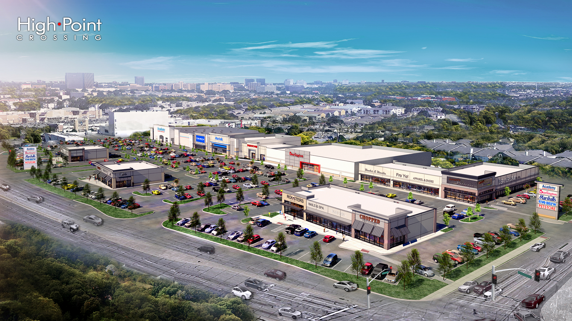 A rendering shows the built-out High Point Crossing retail center. (Courtesy/Boucher Design Group)